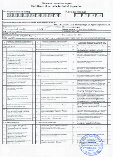 ОФИЦИАЛЬНАЯ ДИАГНОСТИЧЕСКАЯ КАРТА ТЕХОСМОТРА